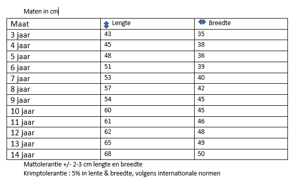 • Je kunt onze maten vergelijken met het product dat je al hebt.